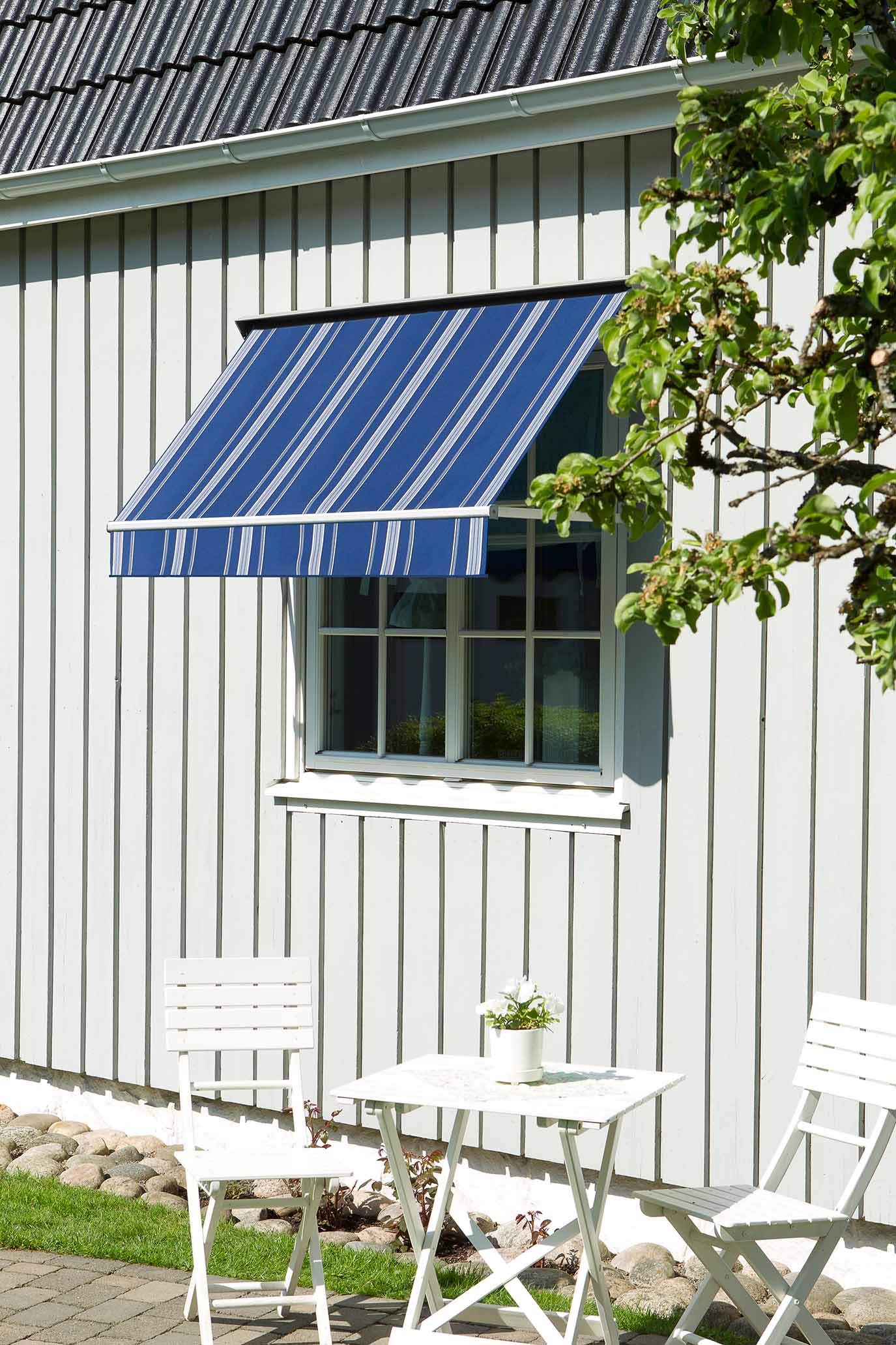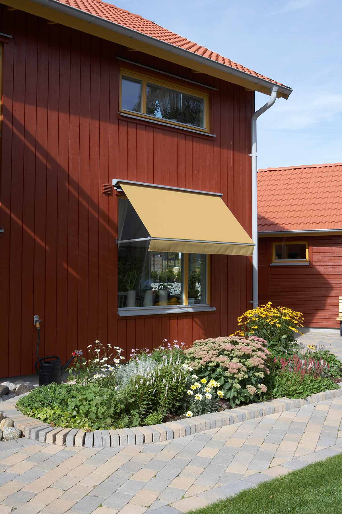Med en fönstermarkis stoppar du värmen från att komma in i rummet och du får en jämnare inomhus temperatur.